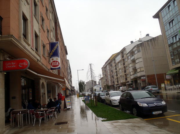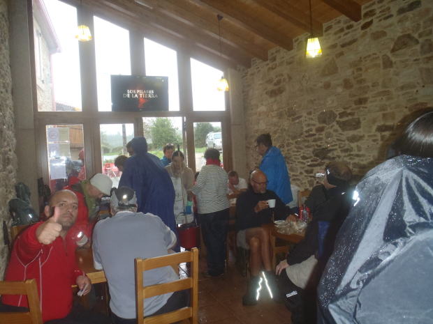 10時25分、最初の休憩。今日ばかりはバルの店内が満員だ。ポンチョを脱ぐと、雨で濡れた体から湯気がたちのぼる。