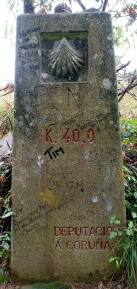 そういえば、距離の下に地名を刻んだものと刻んでないもの、2種類のモホンがあるなあ。39.5kmのモホンには地名があるが、さっき通った40kmのモホンにはなかった。どういうことなんだろう。まさか地名を入れるのを忘れたとか。いや、それはないだろう。