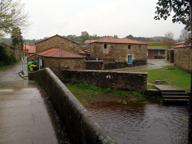 いつもなら適当な木陰がマイトイレなのだが、雨が降っていると「濡れない木陰」という条件がつくので、ちょっと面倒だ。それでバルでもあれば、と思ったのだが、そんなものなど影も形もないまま、集落を通り抜けてしまった。