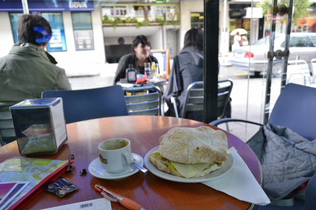 公園に着くまでが大変。なんだかこれまでの勘がにぶり、どう行けばいいのかまったくわからず右往左往。おなかがすいたので通りのバルでボカディージョを。丸いパンにいろんな具が入り、マヨネーズで味がついていた。うまい。カフェオレと合わせて5ユーロ。安い。