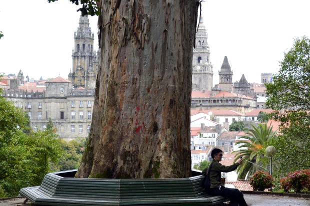 ベンチには「RAMON MARIA DEL VALLE-INCLAN」とある。あとで調べたらスペインの作家のバリェインクランで、いつもこのベンチから大聖堂を眺めていたそうだ。