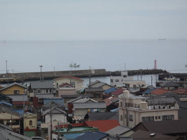 今回泊った玉樟園新井は、海からやや奥まったところでしたが、高台にあるので海は一望。こういう眺めもいいものです。海はもちろんですが、手前の家並みが人々の暮らしを感じさせ、いつまで見ててもアキない風景で